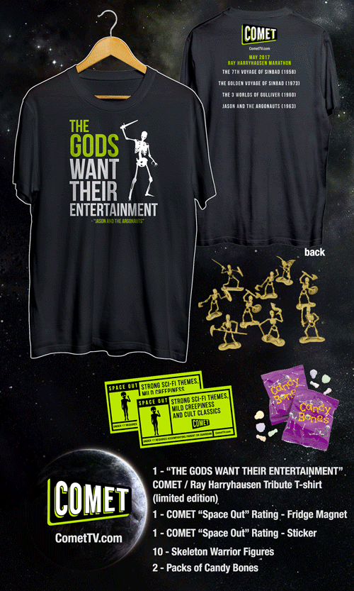 All this month, Comet TV is featuring classic Ray Harryhausen films of special effects yesteryear. AND we are hosting a Ray Harryhausen swag bag giveaway!