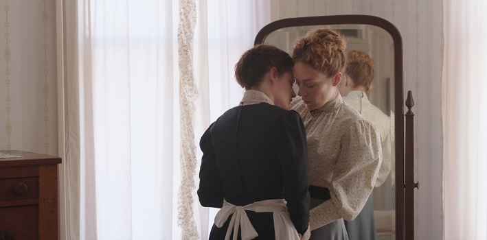 Sexually repressed Lizzie basically falls for Ms. Flat Affect herself, Kristen Stewart and the chemistry is . . . not too shabby actually, from the looks of the trailer.
